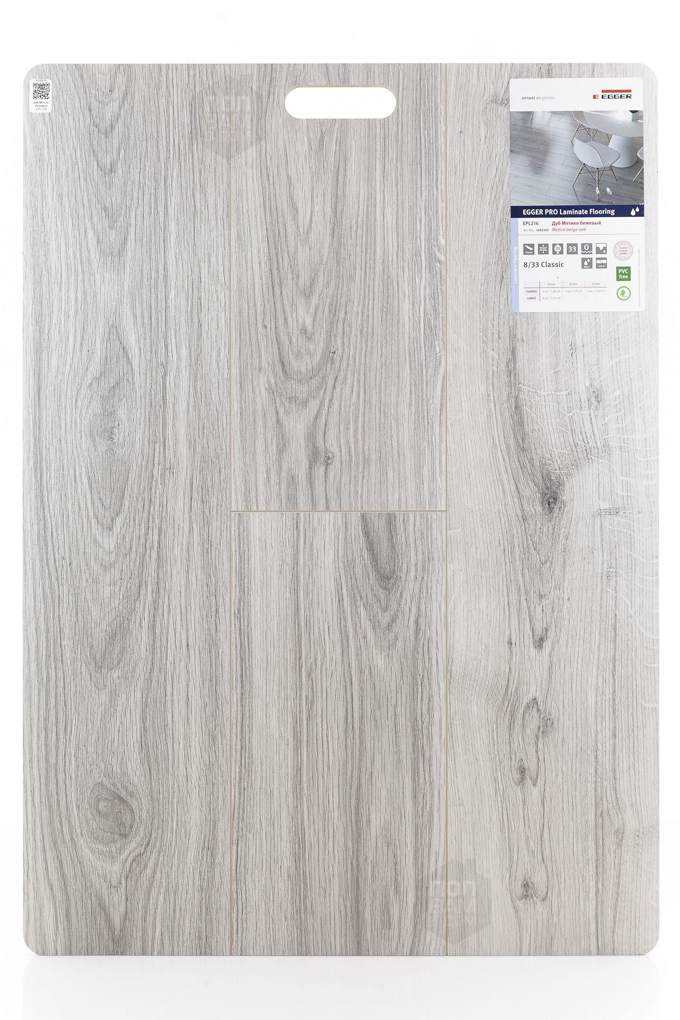 Ламинат EGGER Дуб Метико бежевый EPL216 - цена 1 715 руб. за квадратный метр. Это покрытие толщиной 8 мм, порода дерева - дуб, фаска с 4-х сторон. Брашированная поверхность ламината имеет светлый оттенок и матовый блеск. Для того, чтобы купить в Нижнем Новгороде ламинат из коллекции EGGER Classic 8/33 aqua+ Дуб Метико бежевый EPL216, положите товар в корзину или свяжитесь с нами любым доступным способом. Товар есть в наличии.