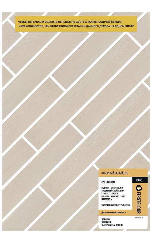 SPC ламинат FirstFloor Отборный белый дуб 1F053