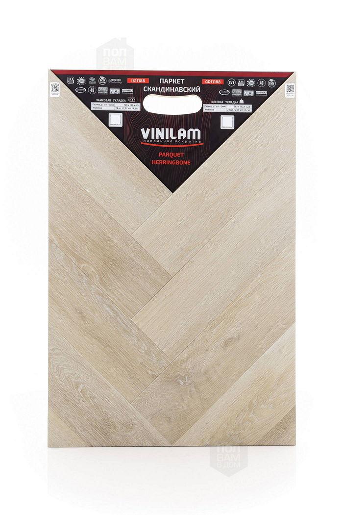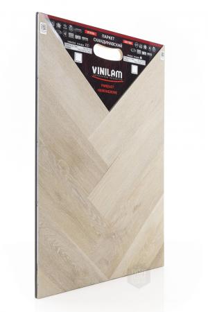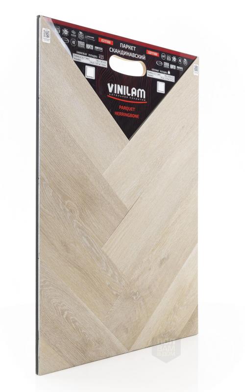 Виниловый ламинат Vinilam - это современное и надежное напольное покрытие, обладающее превосходными эксплуатационными и эстетическими характеристиками. Производится напольное покрытие в Китае, основой является прочный винил, имеющий верхнюю часть с фактурой натуральной древесины или камня. Ассортимент насчитывает более 80 декоров, среди которых есть декоры елочки. Виниловый ламинат Vinilam имеет 43 класс нагрузки и идет в толщине 2,5 мм. Материал обладает ударопрочностью, устойчивостью к царапинам и другим механическим повреждениям. Легко переносит температурные и химические воздействия. Монтаж допустим не только в жилых помещениях, но и во влажных, например, санузлах.