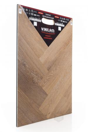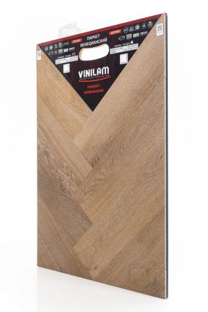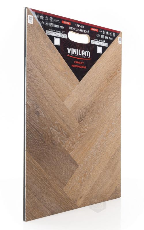 Виниловый ламинат Vinilam - это современное и надежное напольное покрытие, обладающее превосходными эксплуатационными и эстетическими характеристиками. Производится напольное покрытие в Китае, основой является прочный винил, имеющий верхнюю часть с фактурой натуральной древесины или камня. Ассортимент насчитывает более 80 декоров, среди которых есть декоры елочки. Виниловый ламинат Vinilam имеет 43 класс нагрузки и идет в толщине 2,5 мм. Материал обладает ударопрочностью, устойчивостью к царапинам и другим механическим повреждениям. Легко переносит температурные и химические воздействия. Монтаж допустим не только в жилых помещениях, но и во влажных, например, санузлах.