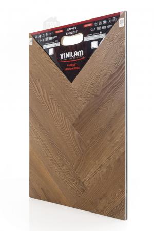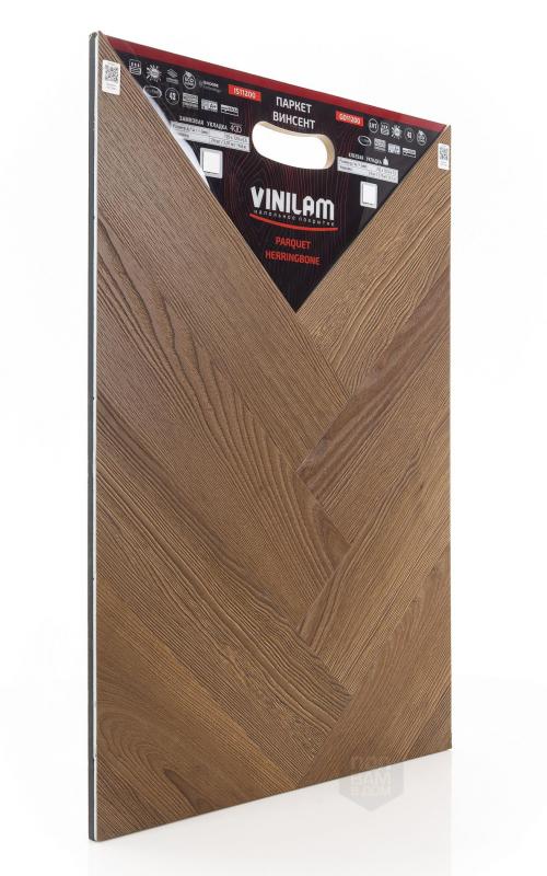 Виниловый ламинат Vinilam - это современное и надежное напольное покрытие, обладающее превосходными эксплуатационными и эстетическими характеристиками. Производится напольное покрытие в Китае, основой является прочный винил, имеющий верхнюю часть с фактурой натуральной древесины или камня. Ассортимент насчитывает более 80 декоров, среди которых есть декоры елочки. Виниловый ламинат Vinilam имеет 43 класс нагрузки и идет в толщине 2,5 мм. Материал обладает ударопрочностью, устойчивостью к царапинам и другим механическим повреждениям. Легко переносит температурные и химические воздействия. Монтаж допустим не только в жилых помещениях, но и во влажных, например, санузлах.