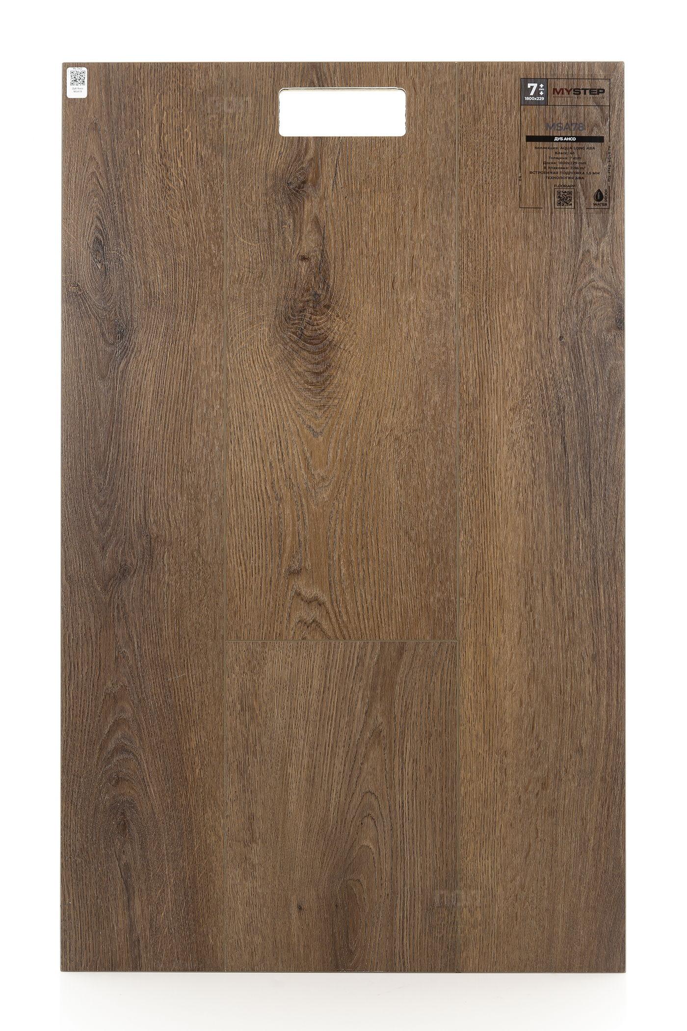 SPC ламинат My Step Дуб Ансо MSA78 - цена 4 490 руб. за квадратный метр. Это покрытие толщиной 7 мм, порода дерева - дуб, фаска с 4-х сторон. Тиснение поверхность SPC ламината имеет тёмный оттенок и матовый блеск. Для того, чтобы купить в Нижнем Новгороде SPC ламинат из коллекции My Step Аква Лонг АВА Дуб Ансо MSA78, положите товар в корзину или свяжитесь с нами любым доступным способом. Товар есть в наличии.