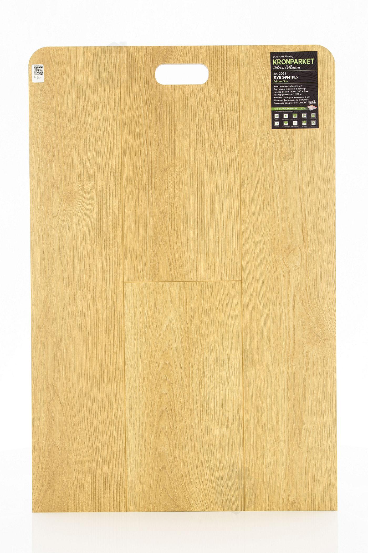 Ламинат Kronparket Дуб Эритрея 3051 - цена 1 790 руб. за квадратный метр. Это покрытие толщиной 8 мм, порода дерева - дуб, фаска с 4-х сторон. Брашированная поверхность ламината имеет светлый оттенок и матовый блеск. Для того, чтобы купить в Нижнем Новгороде ламинат из коллекции Kronparket Delrow Дуб Эритрея 3051, положите товар в корзину или свяжитесь с нами любым доступным способом. Товар есть в наличии.
